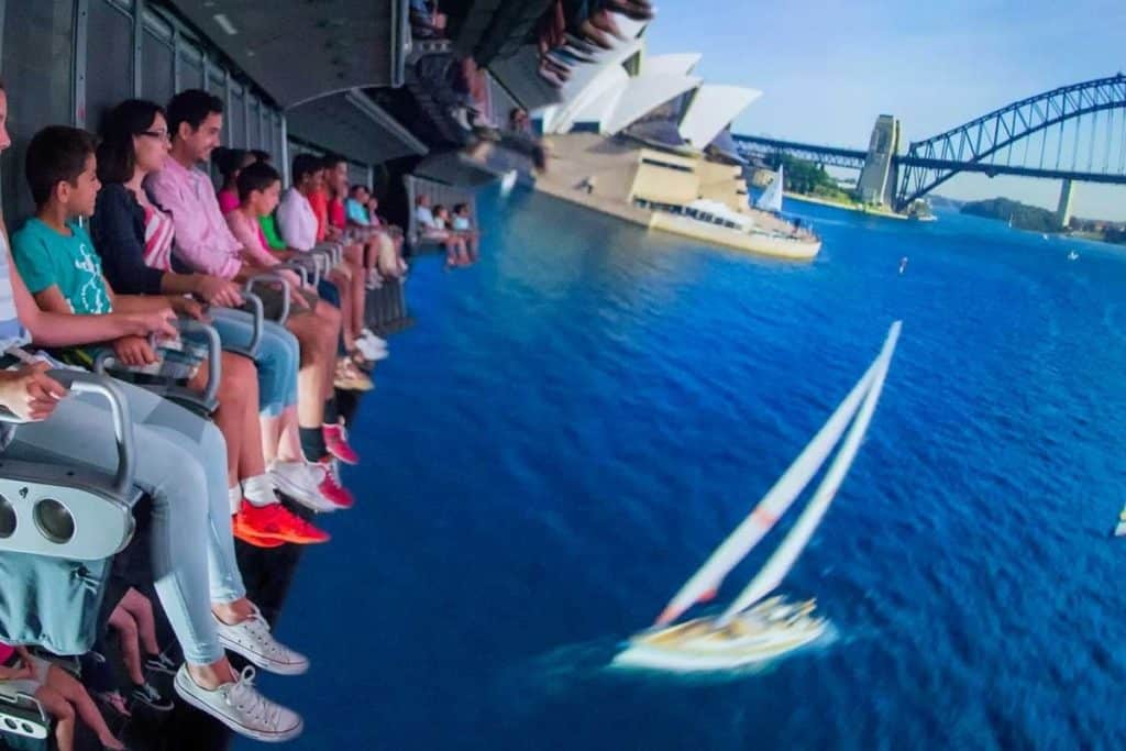 In this ride, guests board a flight simulator ride that takes them around the world to places like: