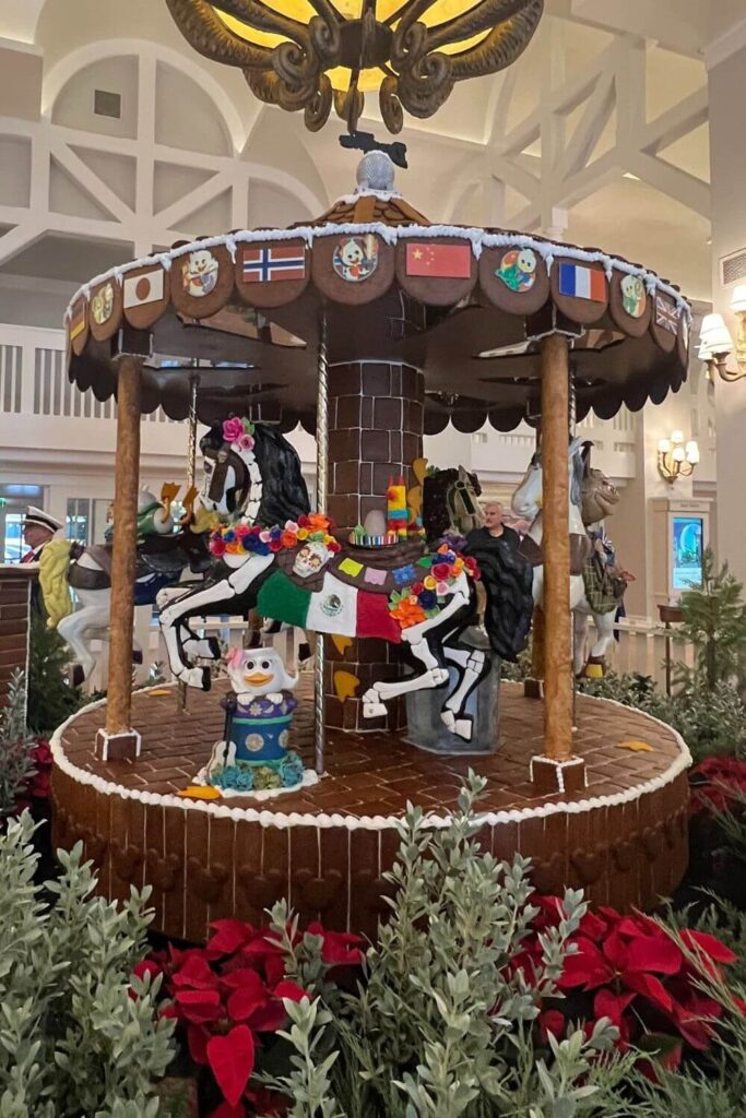 Next, over at the Beach Club Resort is a breathtaking gingerbread carousel that actually moves!